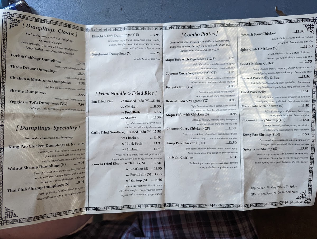 - Dumplings & Soups: Though not broken down into a separate category here, the menu features many dumpling varieties such as walnut shrimp dumplings, ginger & scallion steamed dumplings, spicy kimchi dumpling soup, and mapo tofu dumplings, as well as related dishes like scallion pancakes and chow fun.
